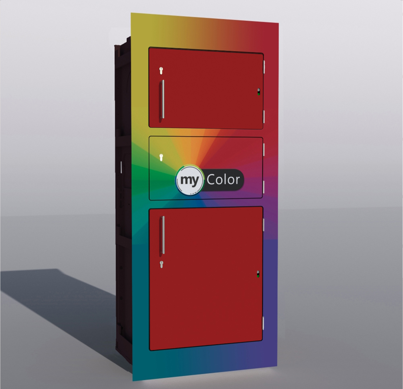 Bei Auswahl mit Hintertür ist die Rückplatte aus Trespa (HPL) und in der selben Farbe wie die Farbe der Frontplatte.