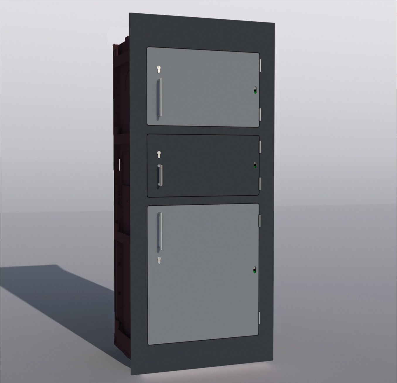 Hier ist kein Drehkasten verbaut, sondern hinter jeder Tür befindet sich ein eigenes Paketfach.