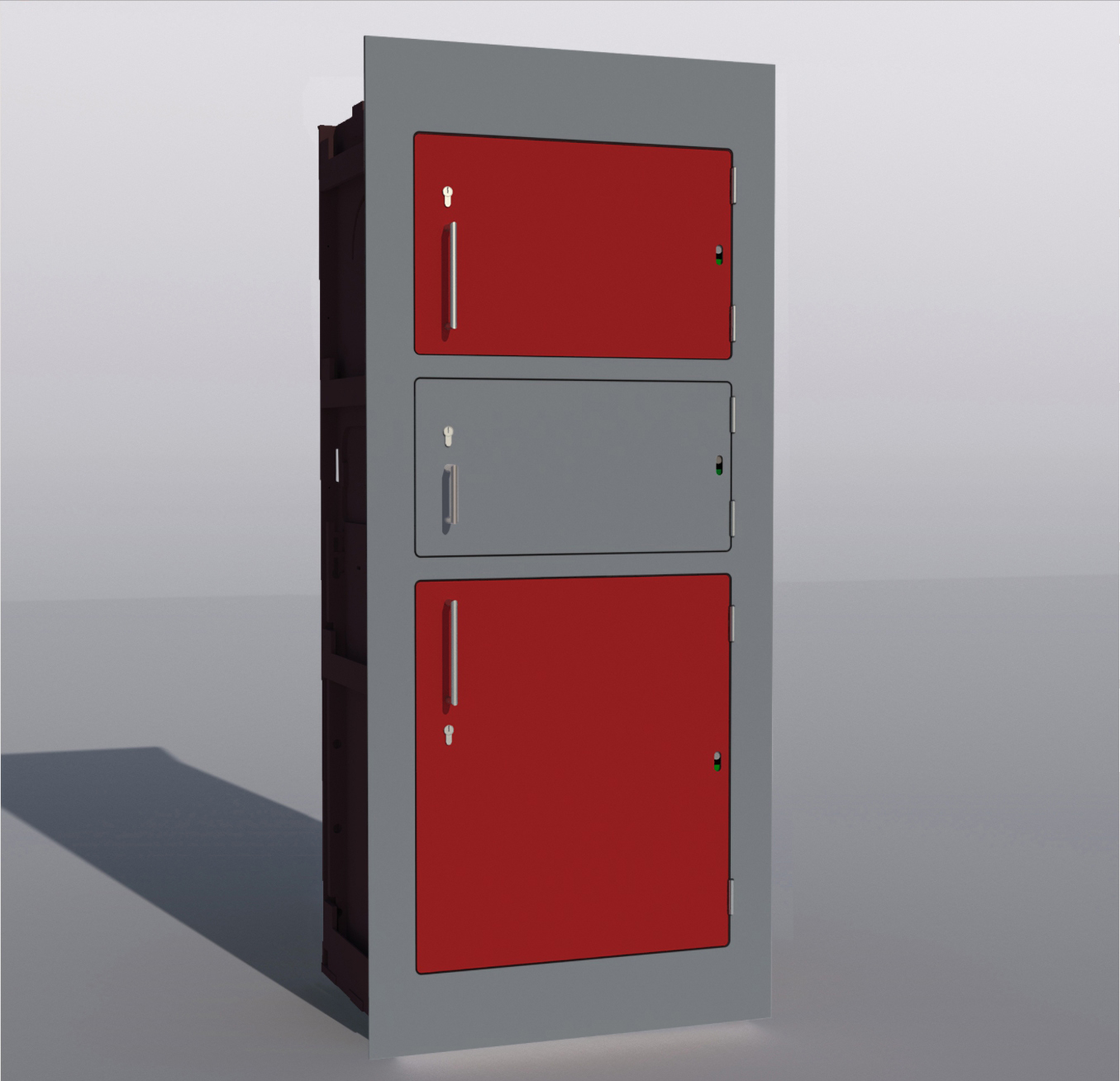 Hier ist kein Drehkasten verbaut, sondern hinter jeder Tür befindet sich ein eigenes Paketfach.