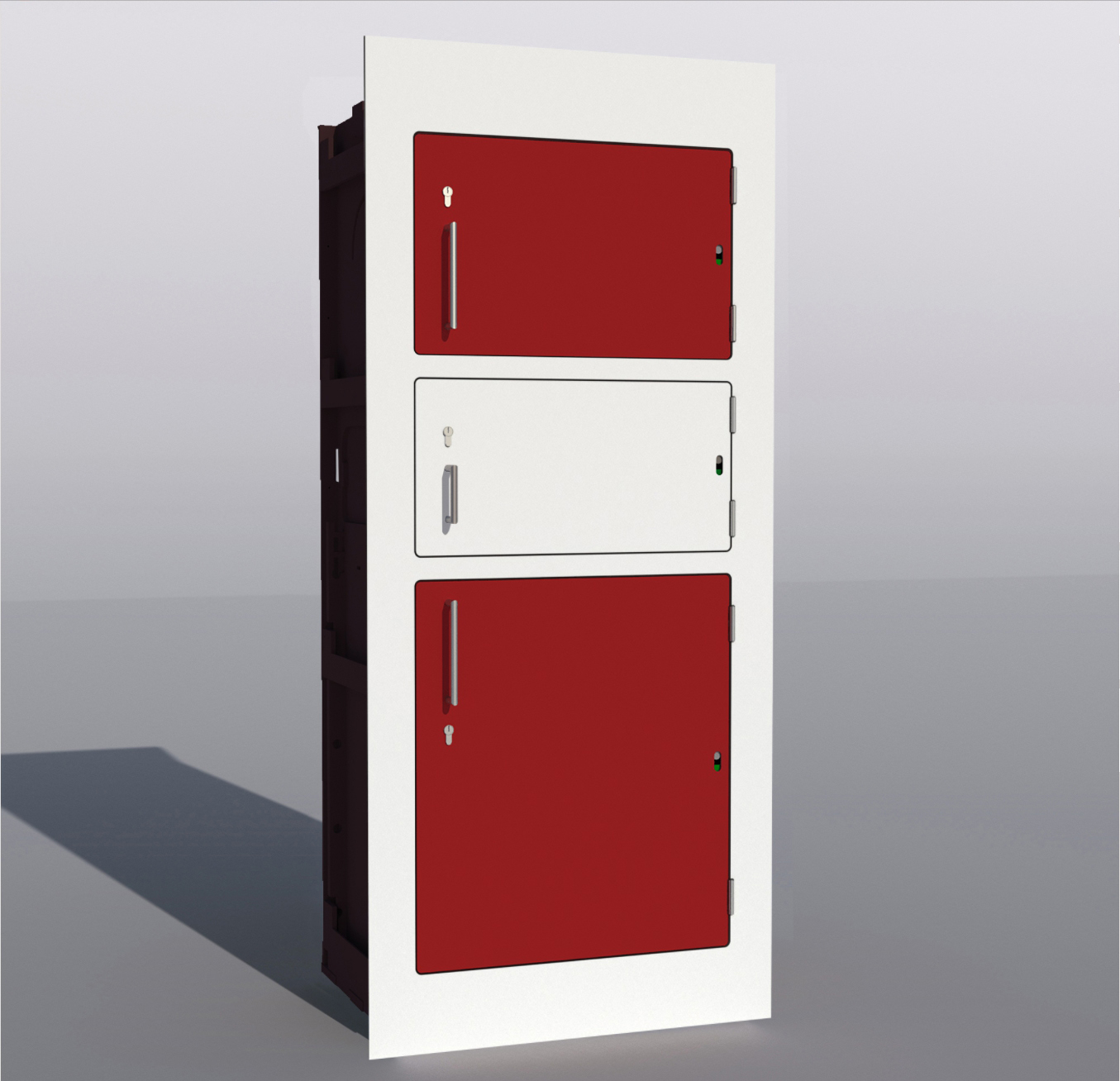 Hier ist kein Drehkasten verbaut, sondern hinter jeder Tür befindet sich ein eigenes Paketfach.