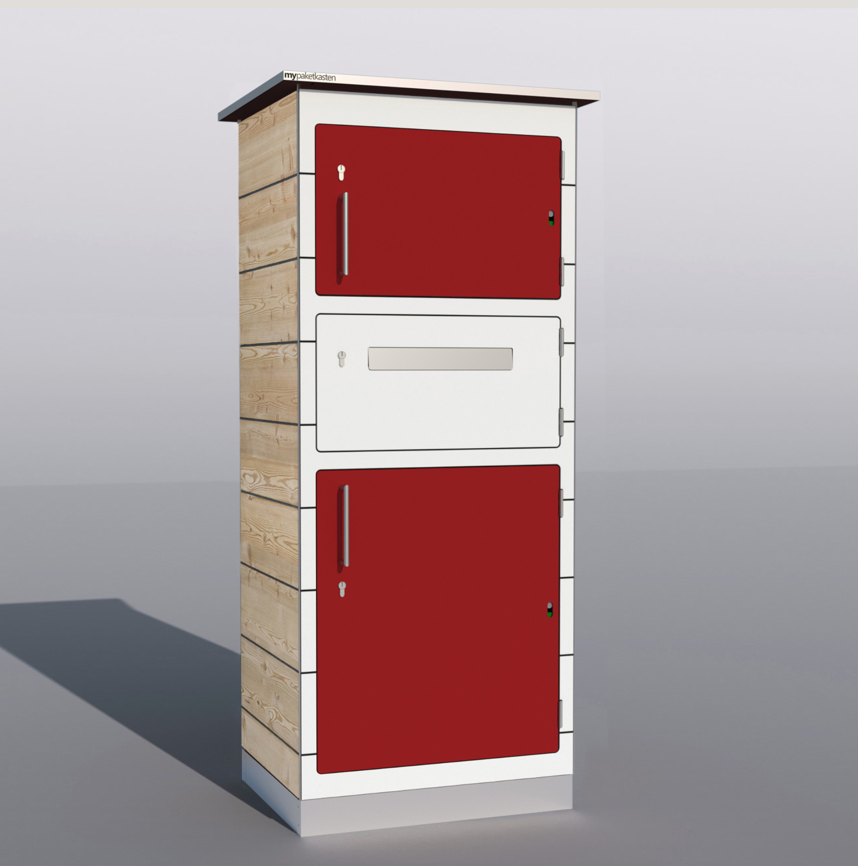 Bei diesem Paketkastenmodell werden die Seitenwände mit Lärchenholz verkleidet, was ihm eine ganz besondere Note verleiht.