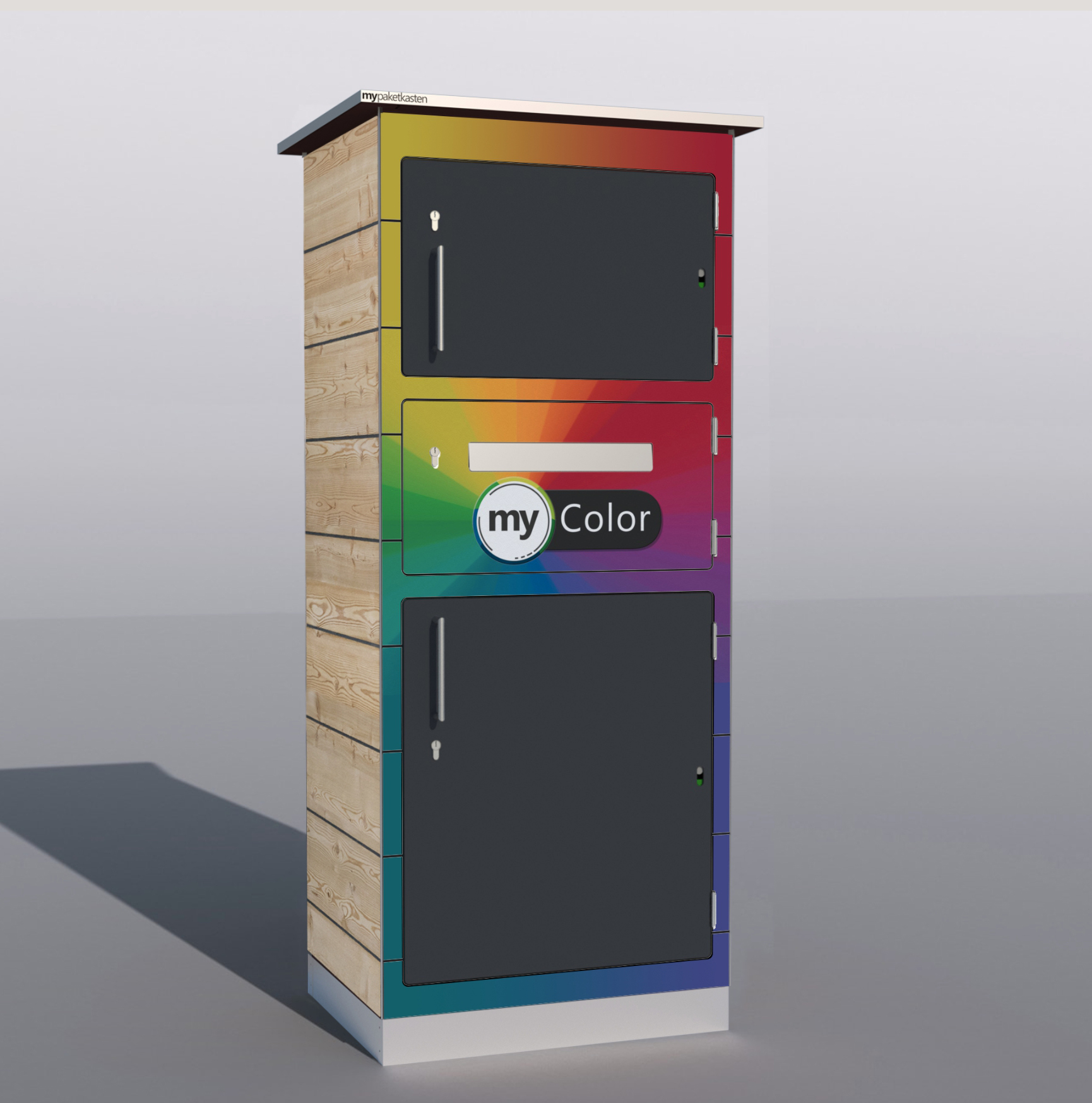 Bei diesem Paketkastenmodell werden die Seitenwände mit Lärchenholz verkleidet, was ihm eine ganz besondere Note verleiht.