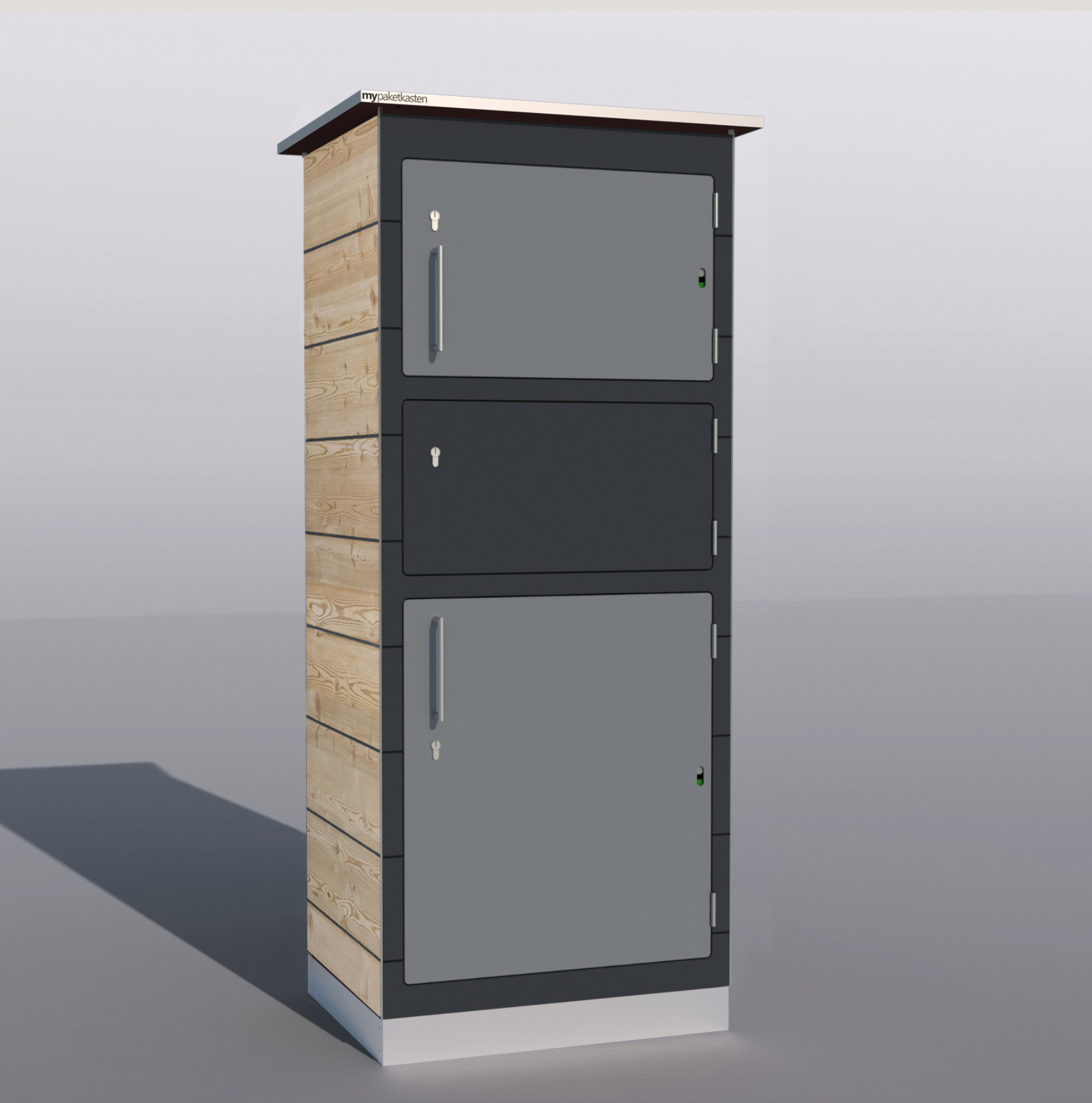 Bei diesem Paketkastenmodell werden die Seitenwände mit Lärchenholz verkleidet, was ihm eine ganz besondere Note verleiht.