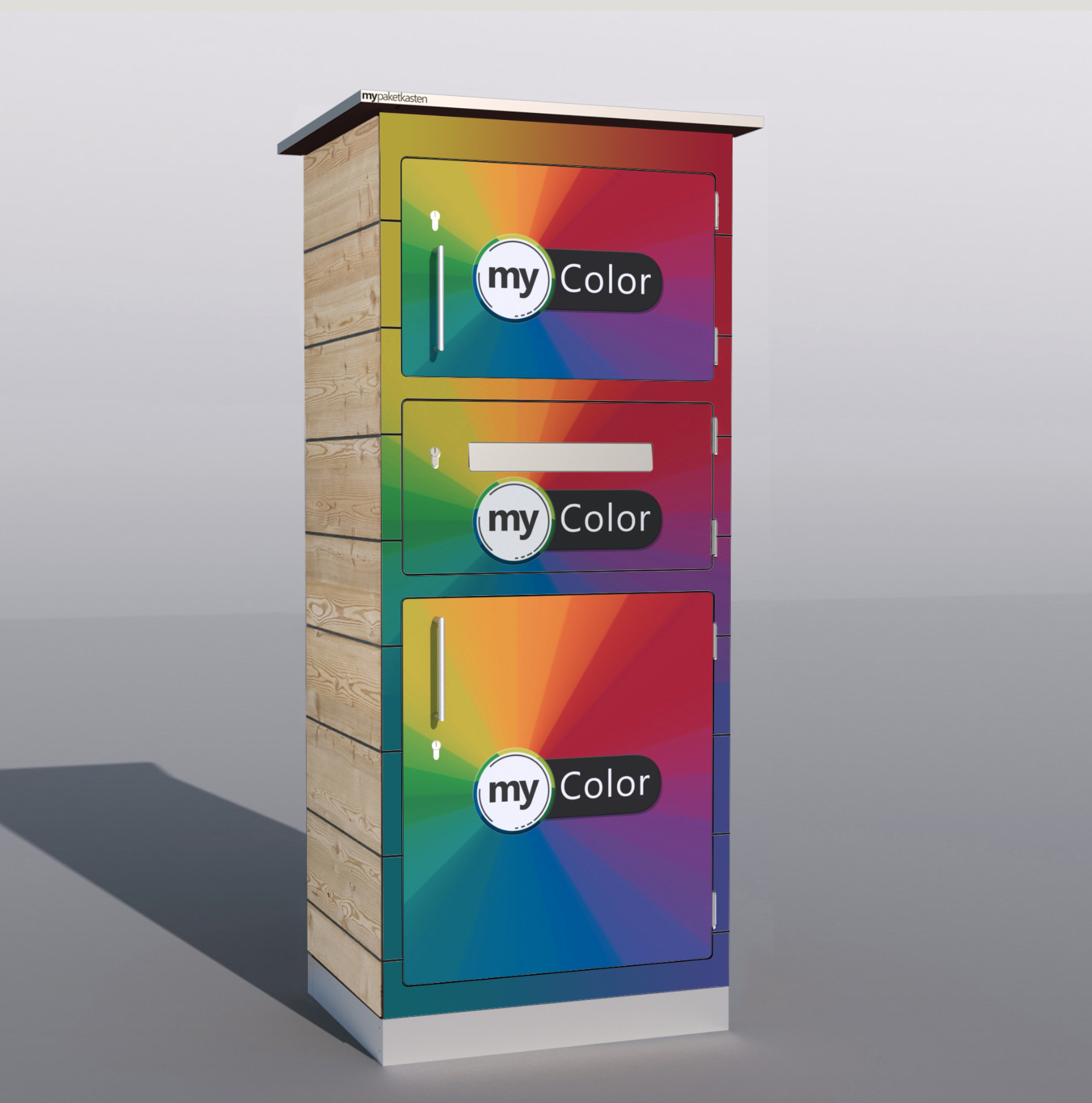 Bei diesem Paketkastenmodell werden die Seitenwände mit Lärchenholz verkleidet, was ihm eine ganz besondere Note verleiht.