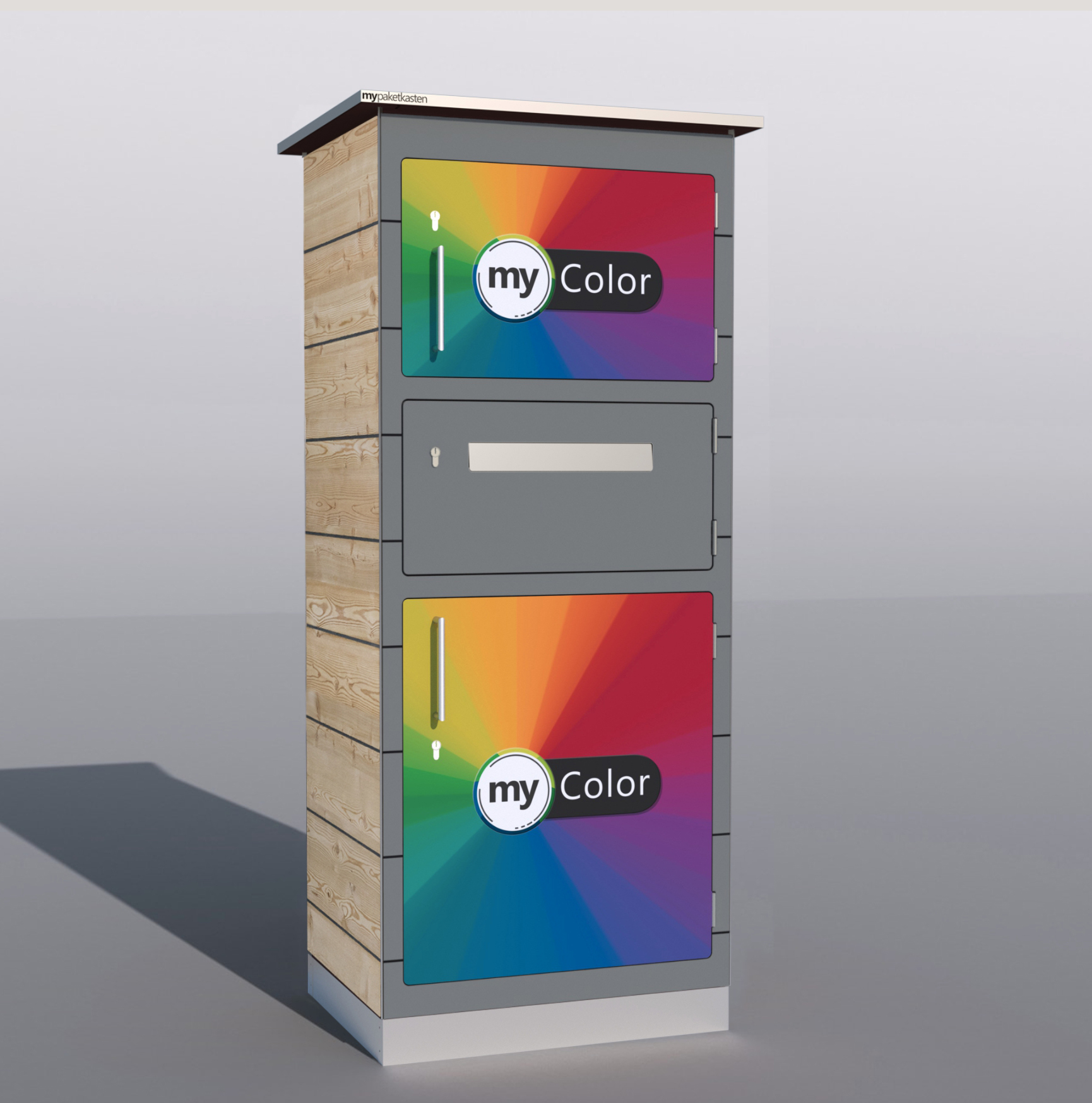 Bei diesem Paketkastenmodell werden die Seitenwände mit Lärchenholz verkleidet, was ihm eine ganz besondere Note verleiht.