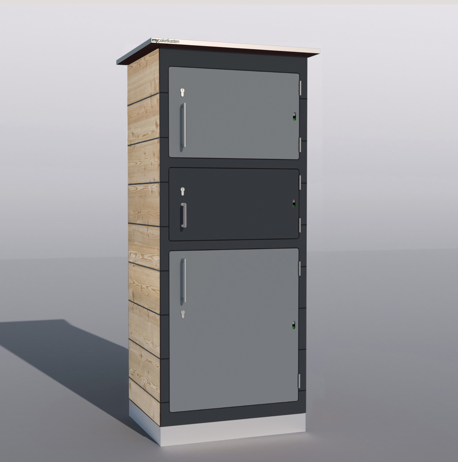 Bei diesem Paketkastenmodell werden die Seitenwände mit Lärchenholz verkleidet, was ihm eine ganz besondere Note verleiht.
