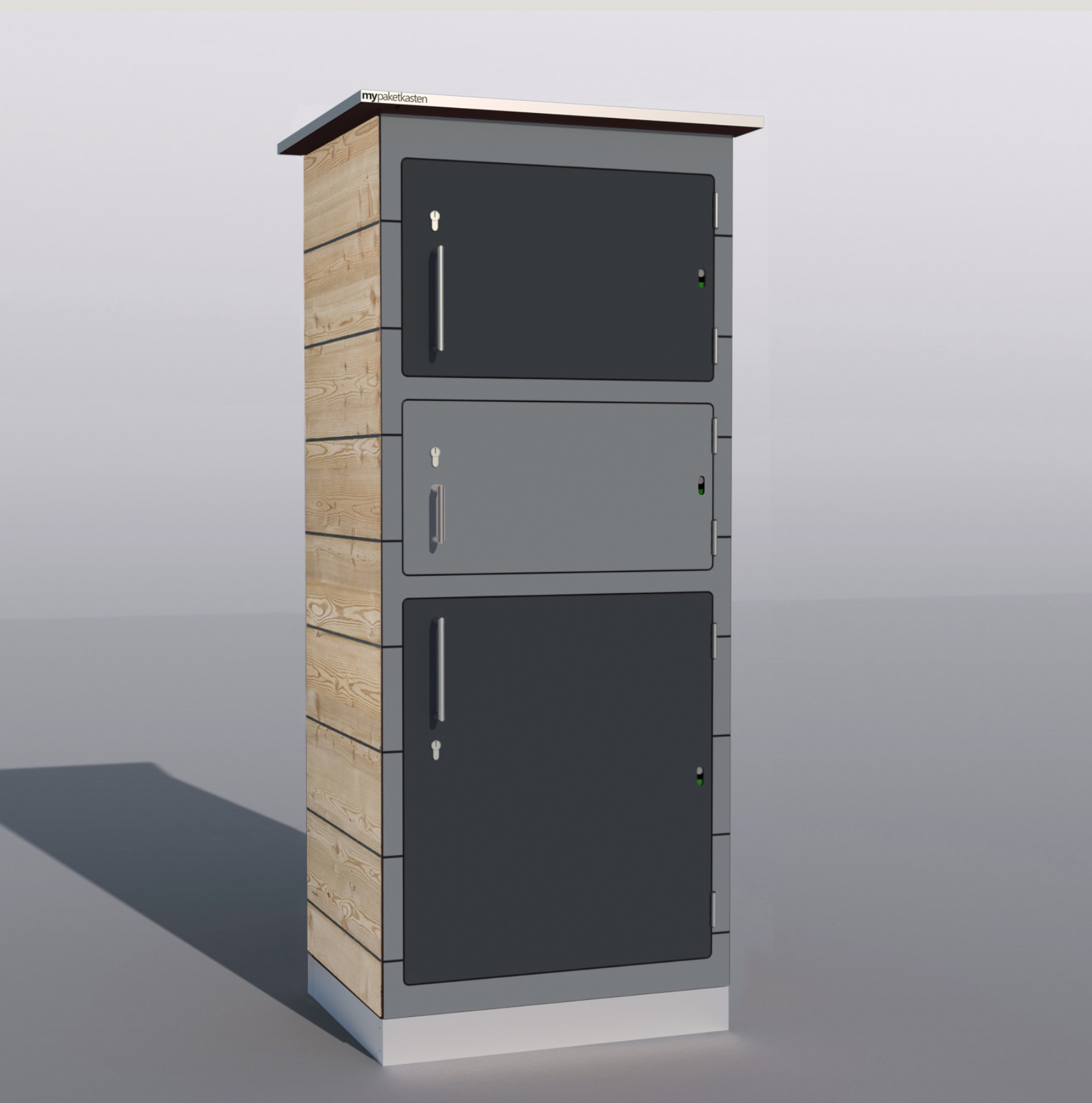 Bei diesem Paketkastenmodell werden die Seitenwände mit Lärchenholz verkleidet, was ihm eine ganz besondere Note verleiht.