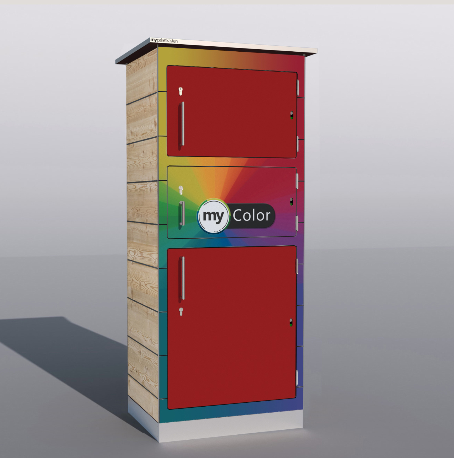 Bei diesem Paketkastenmodell werden die Seitenwände mit Lärchenholz verkleidet, was ihm eine ganz besondere Note verleiht.