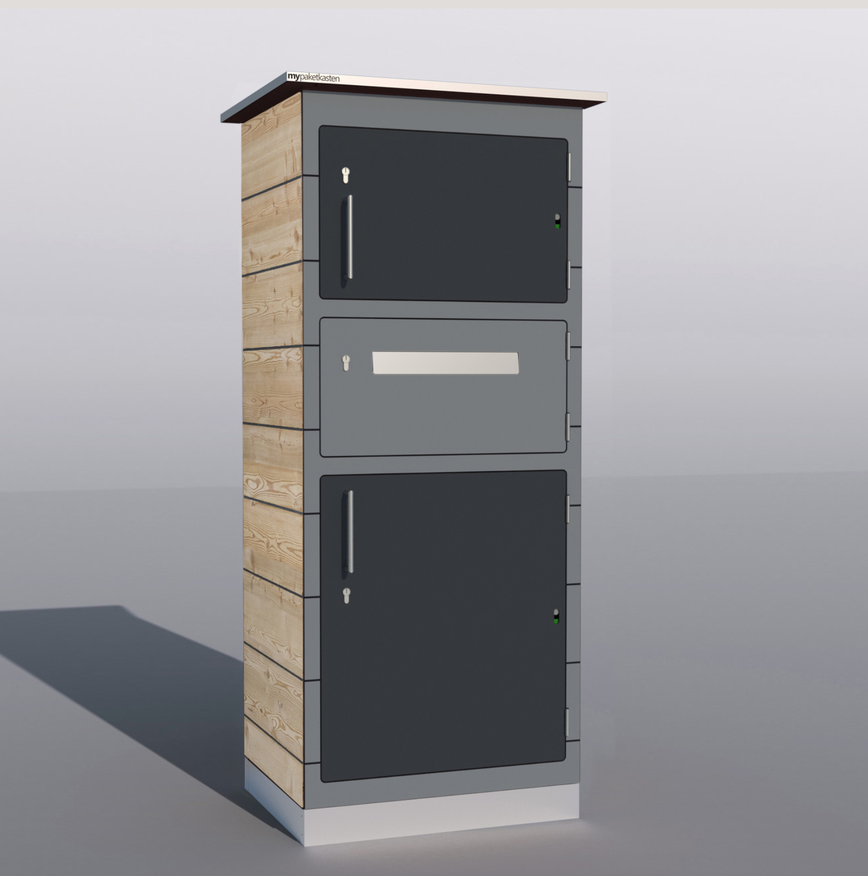 Bei diesem Paketkastenmodell werden die Seitenwände mit Lärchenholz verkleidet, was ihm eine ganz besondere Note verleiht.